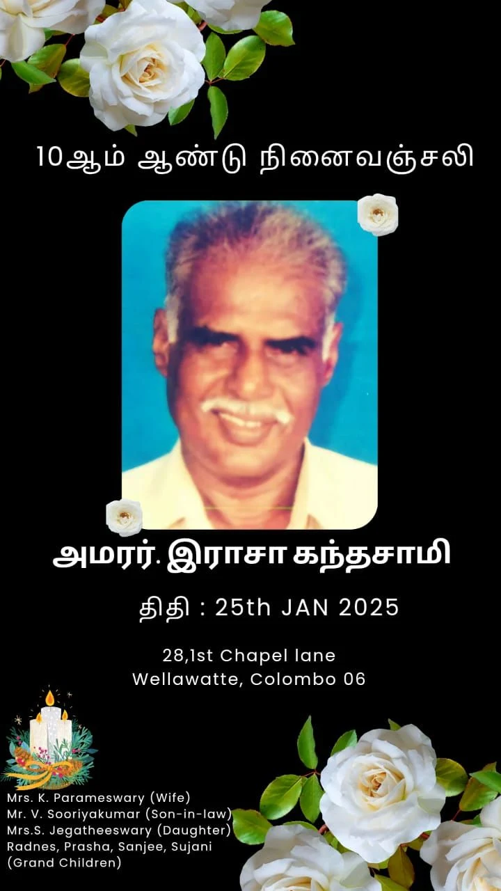 ...:: 10ம் ஆண்டு நினைவஞ்சலி ::... யாழ். சங்கானையைப் பிறப்பிடமாகவும், மாதகல், கொழும்பு ஆகிய இடங்களை வசிப்பிடமாகவும் கொண்ட இராசா கந்தசாமி அவர...